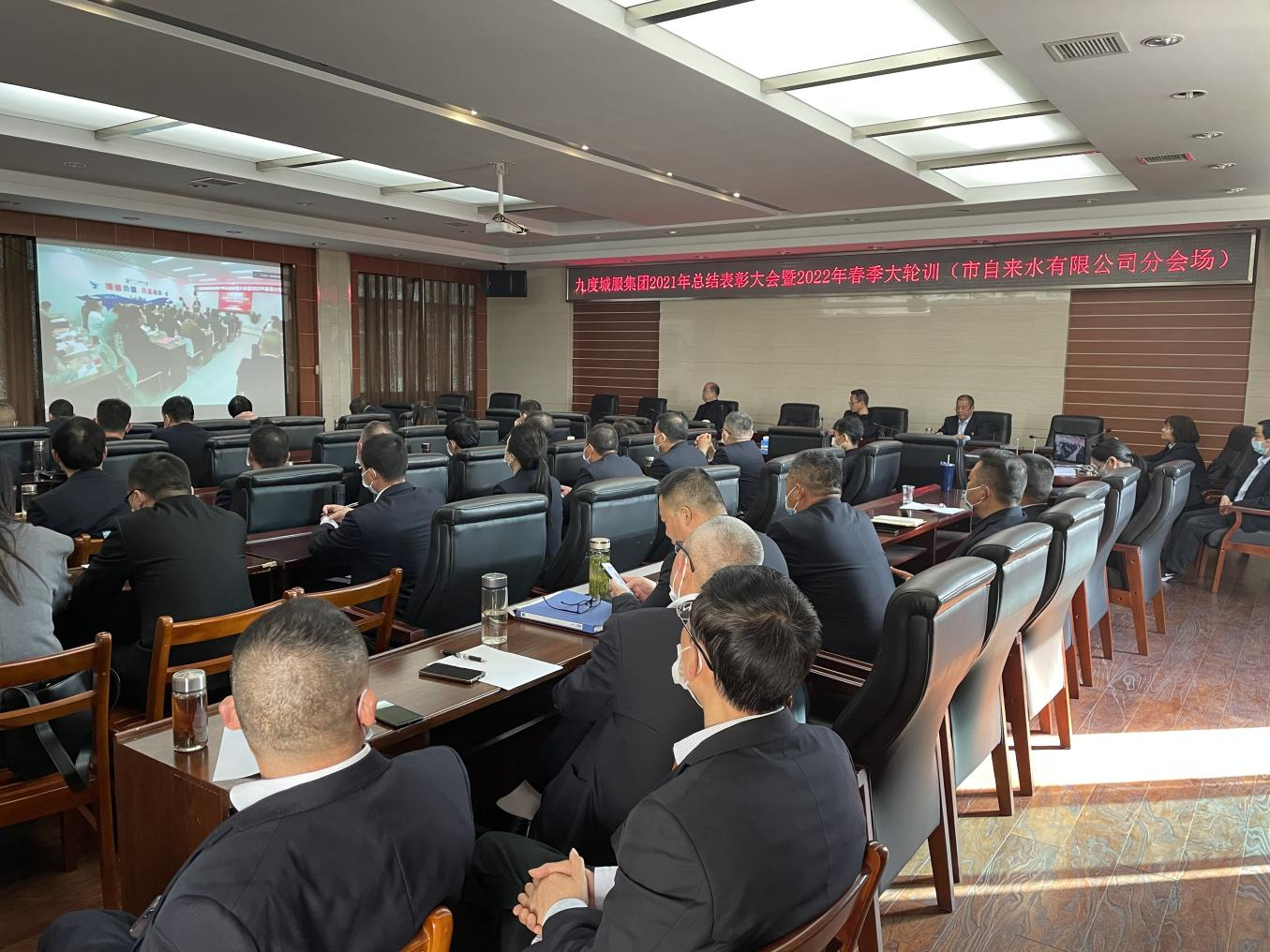 3月11日-12日,在市自來水公司三水廠會(huì)議室,中層副職及以上人員以視頻會(huì)議的方式參加了九度城服集團(tuán)2021年度總結(jié)表彰暨2022年春季大輪訓(xùn)。