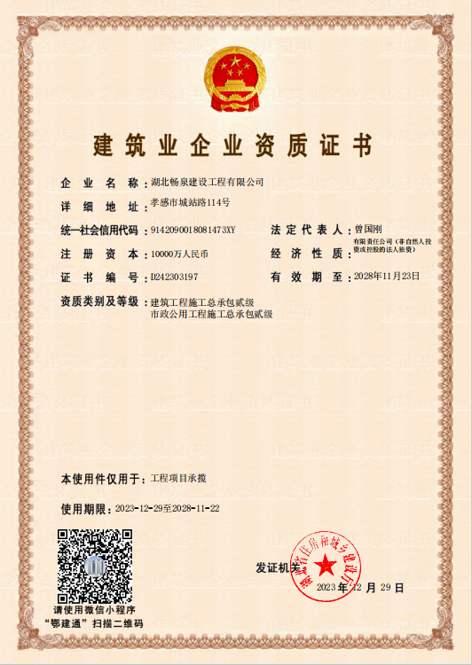 暢泉公司喜獲“市政公用工程施工總承包貳級”資質(zhì)