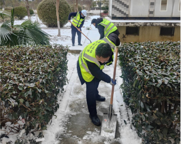 以雪為令,雪停路清。22日早上7點,公司派出5名志愿服務隊員參與公交站臺掃雪除冰行動,有力保障群眾公交出行安全。除此之外,為了保證生產廠區道路暢通,公司采取有力舉措,仙女湖水廠、二水廠、一水廠、龍宮等多個辦公區域共調動工作人員100余名和2臺鏟車,采取撒鹽破冰、鏟雪等方式,確保生產及辦公區域道路暢通。