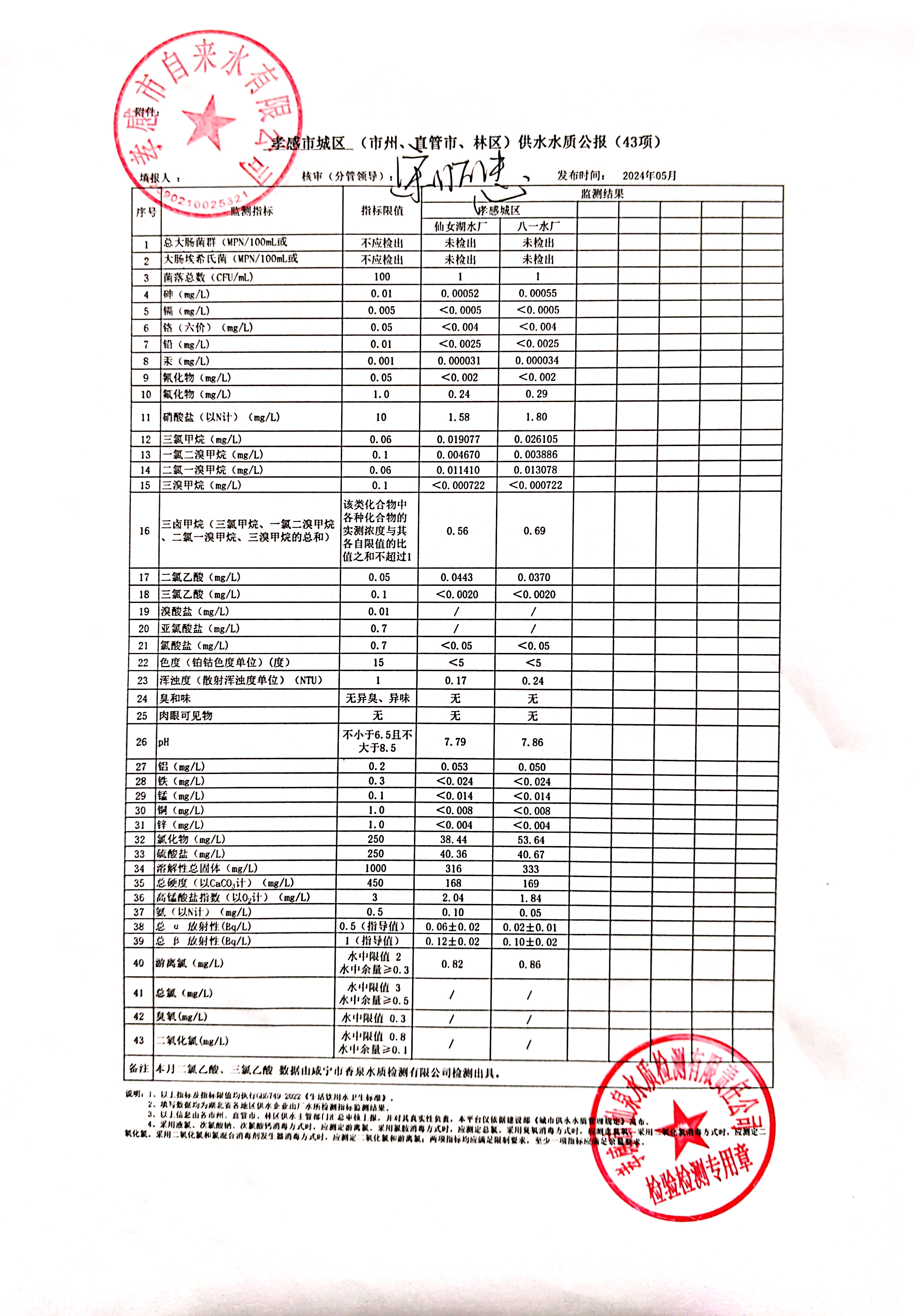 2024年5月水質(zhì)報告