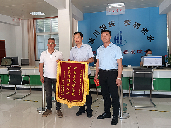 “非常感謝自來水公司,快速精準(zhǔn)地定位了漏點,及時維修,保障了小區(qū)居民正常用水,幫我們解決了一個大難題!”7月5日上午,民邦熙公館小區(qū)物業(yè)工作人員將印有“心系居民水為先 連夜搶修暖人心”的錦旗送到了孝感市自來水有限公司,對我公司心系群眾、為民解憂,為用戶提供優(yōu)質(zhì)供水服務(wù)表示衷心感謝。