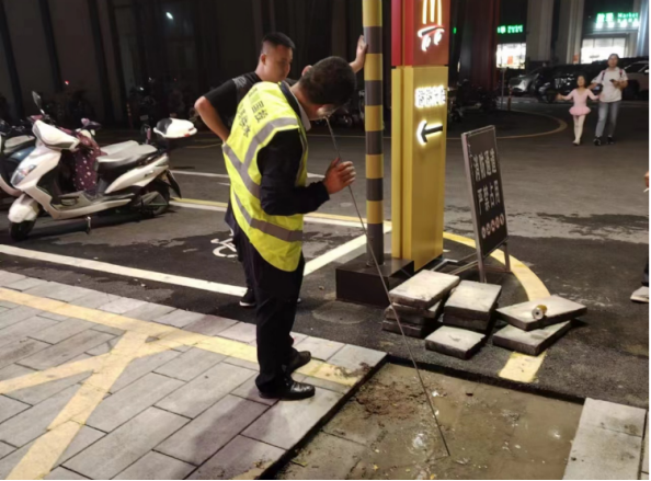7月2日下午5點左右,公司客服熱線接到用戶反映,北京路民邦熙公館小區(qū)突然停水。客戶服務(wù)部工作人員第一時間來到現(xiàn)場,經(jīng)現(xiàn)場勘查發(fā)現(xiàn),小區(qū)進水管道漏水,初步懷疑是內(nèi)部管道存在漏點,造成停水。