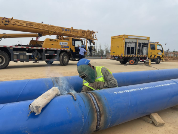 此次管線遷改共需對2條道路(復興大道、縱九路)4個路口共計1600余米的供水管線進行遷改,該工程工期短、地下管線情況復雜,施工難度教高。為高效配合完成京港澳高速公路改擴建工程,全力保障復興大道、縱九路及周邊企業、用戶正常用水,公司克服一切困難,對高速擴建施工實施24小時全天候配合保障,并提前一個月組織專業技術人員多次進行現場踏勘,細化管線施工連接點位置、停水時間、焊接點位和方式,制定周密管線遷改接水方案,為新舊管道連接敷設做好了充足準備。