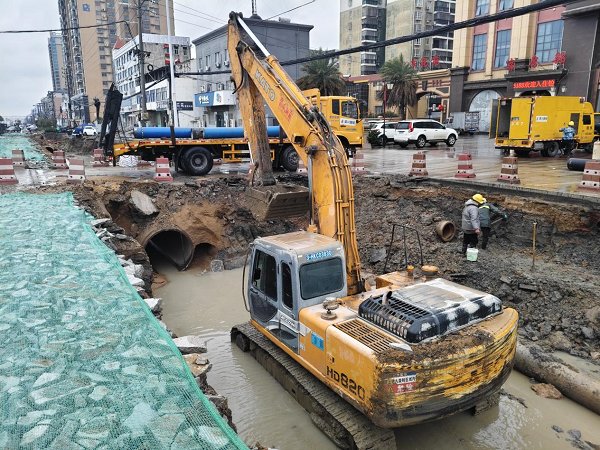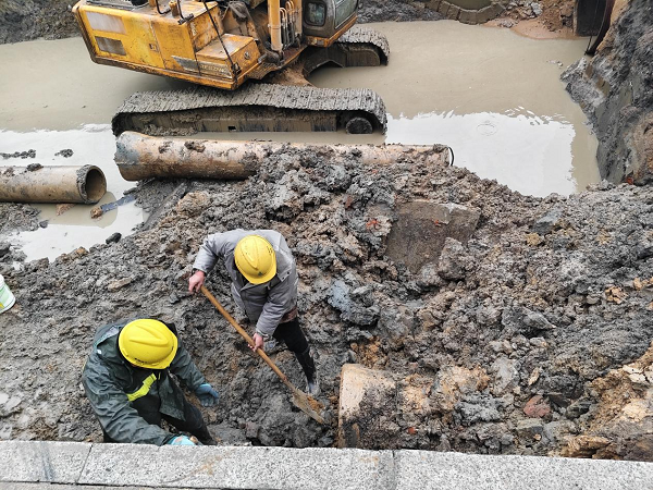 3 月 3 日下午三點(diǎn)二十五分,公司接到市民反映,孝武大道久尊酒店門口出現(xiàn)管網(wǎng)漏水情況。經(jīng)調(diào)查,此次管網(wǎng)漏水,是由于道路施工開挖作業(yè)中存在違規(guī)操作。施工方致使供水管網(wǎng)暴露在外,卻未進(jìn)行任何加固處理。作業(yè)坑道在大雨的持續(xù)沖刷下發(fā)生了滑坡現(xiàn)象。最終,在滑坡產(chǎn)生的強(qiáng)大外力作用下,該地段兩根DN400水泥管脫頭,進(jìn)而引發(fā)了管網(wǎng)漏水問題。