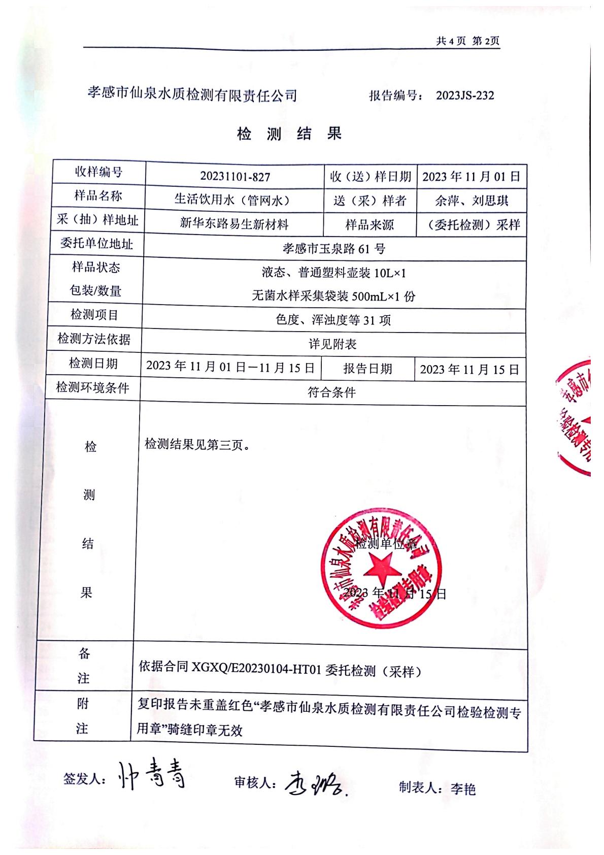 2023年11月檢測報(bào)告