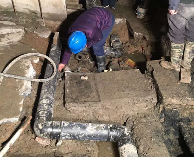 來到居民樓下,濃重的異味撲面而來。與反映情況的居民取得聯系后,維修中心工作人員顧不得四處漫溢的污水和刺鼻的氣味,逐段打開下水蓋板進行檢查。現場排查發現,居民樓自來水進水管雖然與下水涵管相鄰,但與下水道過水并無任何關聯,這一結論也得到了圍觀群眾的見證和認可。應住戶的要求,工作人員又繼續對沿線下水道進行清查,最終找到了淤塞的原因:此處有兩條天然氣管道橫穿下水涵管,影響正常過水,加上周邊餐飲點較多,排入下水道的油污長期沉積,遂導致數十米下水道嚴重堵塞。