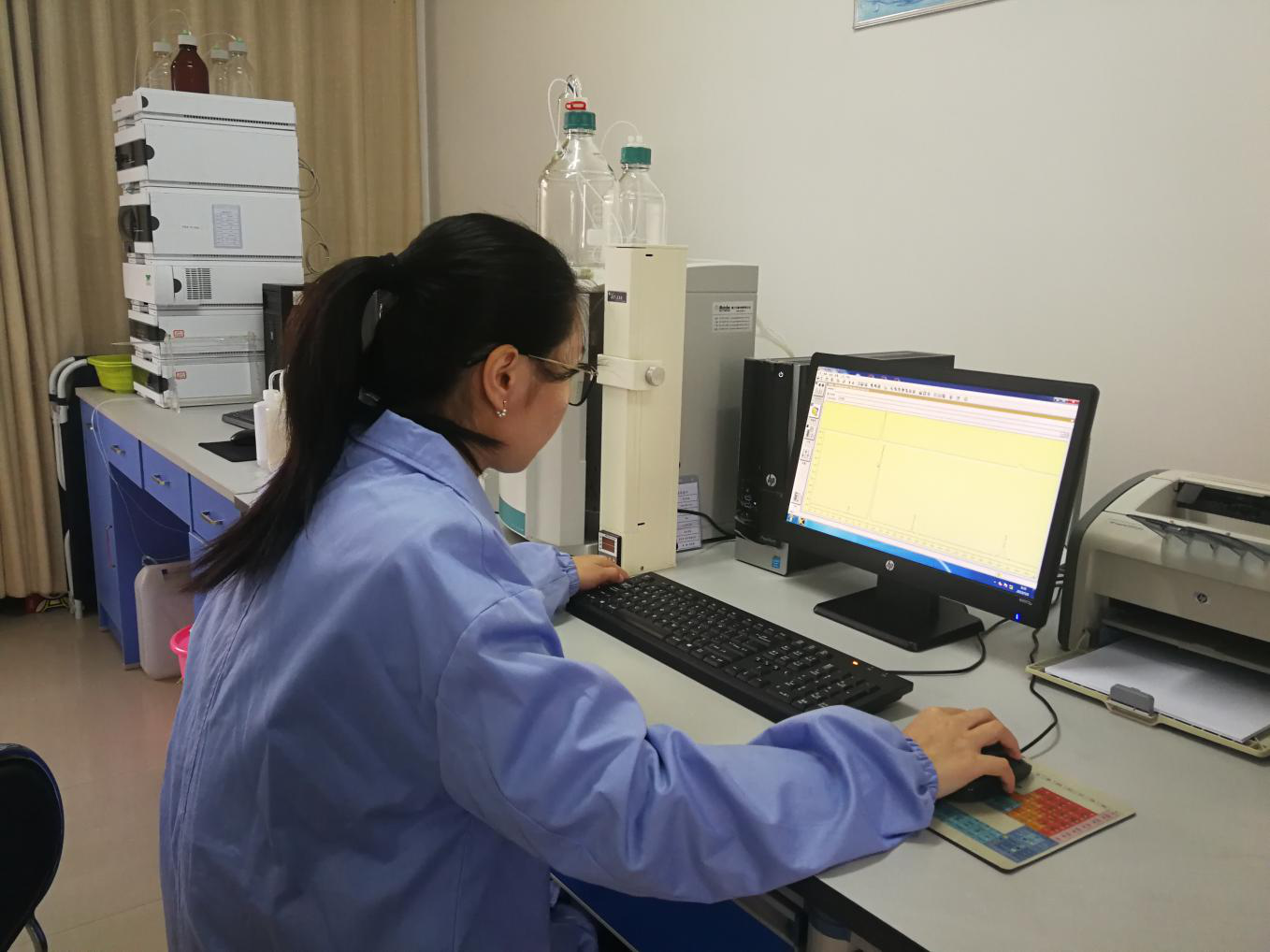 水質(zhì)檢測是安全供水的前提,更是安全供水的基礎(chǔ)。2015年,公司組建了仙泉水質(zhì)檢測有限責(zé)任公司,投入大量資金購買原子吸收分光光度計(jì)、原子熒光光度計(jì)、氣相色譜儀、離子色譜儀等專業(yè)儀器設(shè)備,承擔(dān)公司出廠水、源水水質(zhì)日檢、半月檢、月檢及年檢等相關(guān)水質(zhì)檢測工作。通過對水質(zhì)的濁度、PH值,余氯等指標(biāo)數(shù)據(jù)監(jiān)測結(jié)果與水質(zhì)在線檢測儀比對數(shù)值,時(shí)刻掌握數(shù)據(jù)變化趨勢,加強(qiáng)對出廠水的常規(guī)檢測頻次,密切關(guān)注水質(zhì)變化,全力保證水質(zhì)安全。