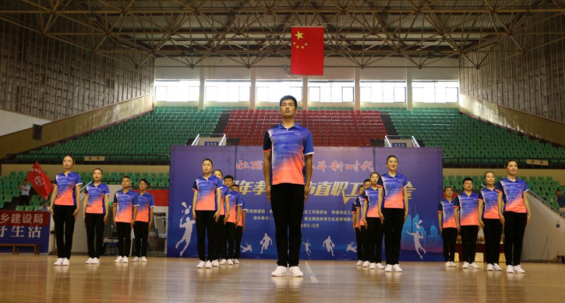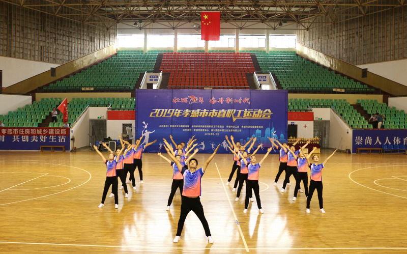 6月26日,2019孝感市市直職工運動會“工間操”比賽項目在體育館如期舉行。上午8點30分,來自市直機(jī)關(guān)的26支代表隊共計400多名隊員參加了此次比賽。