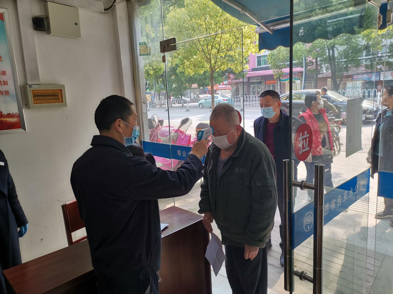 當天上午8:00左右,公司所轄的玉泉路、市民之家、城站路三個客服營業(yè)網(wǎng)點,早早開門受理業(yè)務(wù)。大廳接待場所全面消殺、門口臨時增放候位板凳、布置安全防護設(shè)施等等。窗口人員按照要求配帶口罩,久違的微笑、貼心的問候如沐春風。