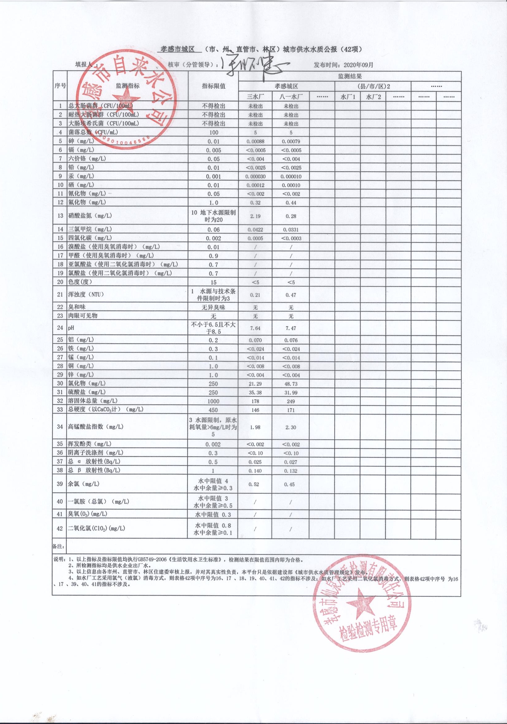 2020年9月水質報告