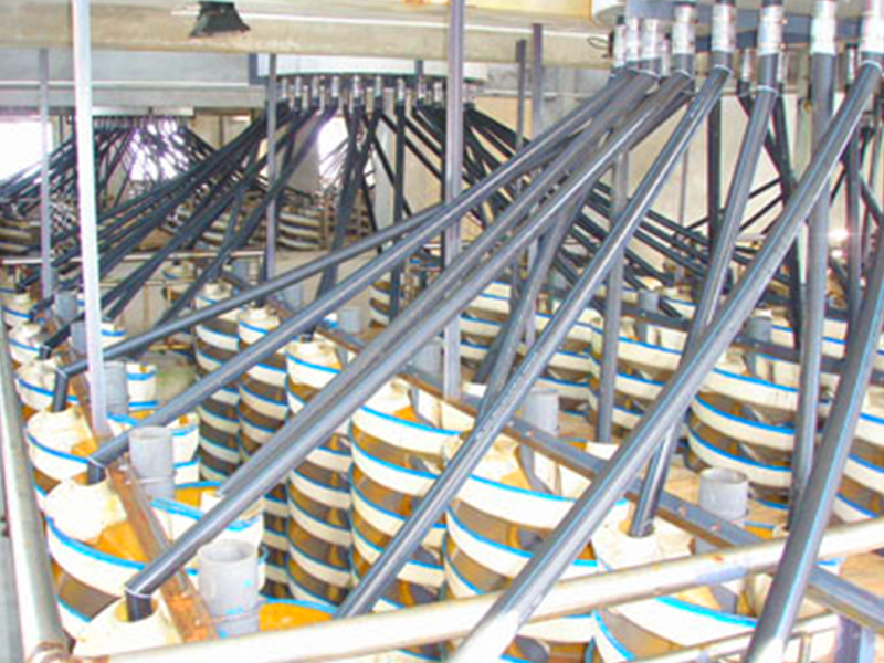 公司有玻璃鋼化工技術(shù)及制造工藝的優(yōu)勢,早在1988年就研制開發(fā)了國內(nèi)大直徑及新斷面特性的DL—2000型兩米直徑玻璃鋼螺旋溜槽。該設(shè)備一臺處理能力相當(dāng)于40臺搖床,選別指標(biāo)優(yōu)良。1989年通過部級技術(shù)鑒定并獲獎,填補(bǔ)國內(nèi)選礦設(shè)備一項(xiàng)空白。20多年來,公司先后開發(fā)了一系列玻璃鋼選礦新設(shè)備,使設(shè)備性能、結(jié)構(gòu)參數(shù)更臻完善。就玻璃鋼螺旋溜槽φ400—φ2000各類系列產(chǎn)品和各種床條結(jié)構(gòu)的玻璃鋼搖床而言,公司擁有國內(nèi)完備的直徑與型號系列;完善的結(jié)構(gòu)參數(shù);過硬的制作質(zhì)量;新穎的改進(jìn)型式;可靠的設(shè)備選型方法。
