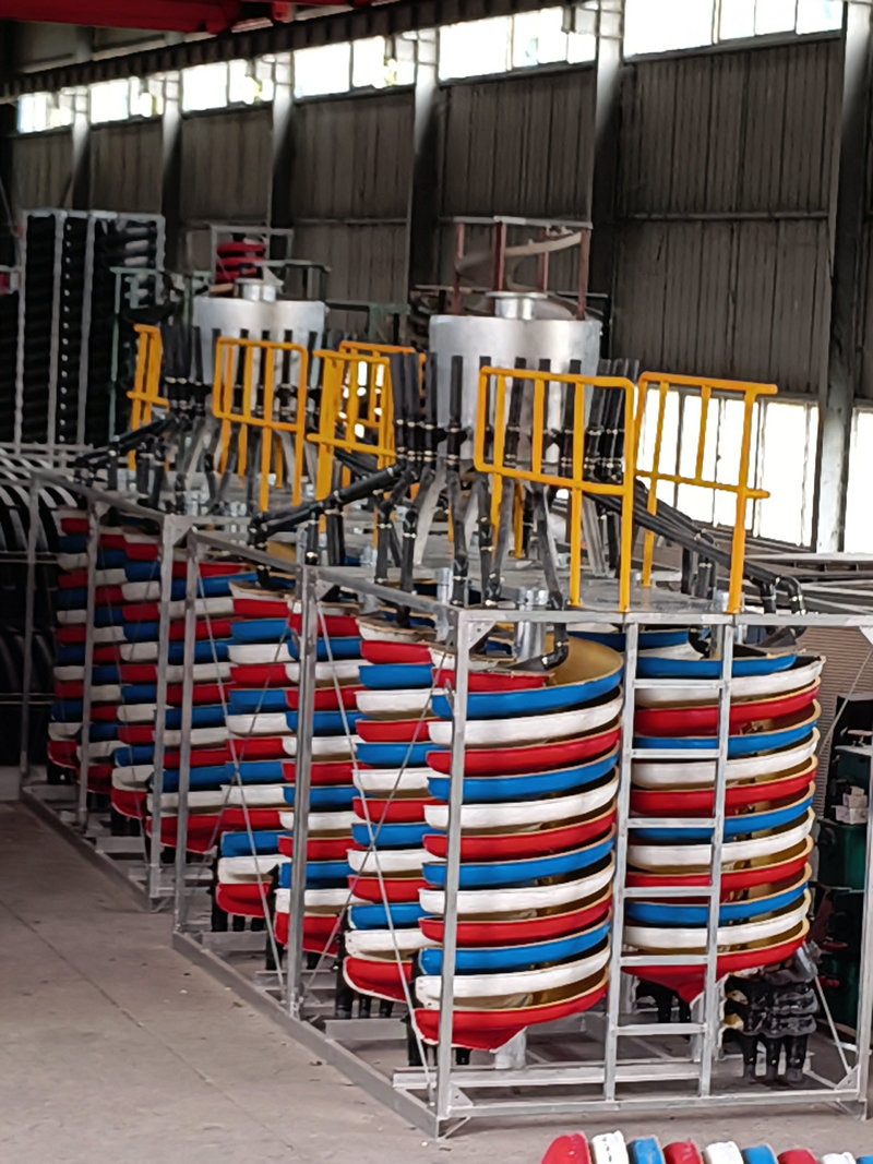 技術(shù)研革 我公司生產(chǎn)6-S搖床、螺旋溜槽已30載,型號(hào)從φ400—φ2000,選別曲線不斷優(yōu)化,從立方拋物線、橢圓曲線到復(fù)合曲線,使設(shè)備的選別性能更加優(yōu)化,滿足不同礦物選別的需求。世界上大規(guī)格的螺旋溜槽(直徑2000mm),就是我公司生產(chǎn)并通過部級(jí)技術(shù)鑒定而獲獎(jiǎng)的。現(xiàn)在我公司可生產(chǎn)318種不同規(guī)格型號(hào)的螺旋溜槽,可按用戶的“腳”制造適合的“鞋”,保證滿足用戶要求。我公司的高技術(shù)人員還可為設(shè)計(jì)方案提供咨詢意見,以便用戶獲得好的經(jīng)濟(jì)指標(biāo)。