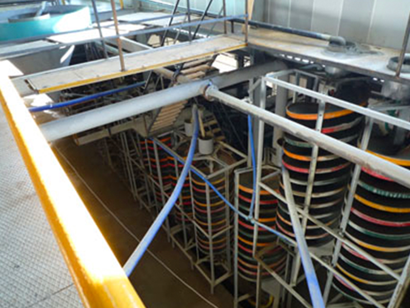 公司有玻璃鋼化工技術(shù)及制造工藝的優(yōu)勢,早在1988年就研制開發(fā)了國內(nèi)大直徑及新斷面特性的DL—2000型兩米直徑玻璃鋼螺旋溜槽。該設(shè)備一臺處理能力相當(dāng)于40臺搖床,選別指標(biāo)優(yōu)良。1989年通過部級技術(shù)鑒定并獲獎,填補(bǔ)國內(nèi)選礦設(shè)備一項(xiàng)空白。20多年來,公司先后開發(fā)了一系列玻璃鋼選礦新設(shè)備,使設(shè)備性能、結(jié)構(gòu)參數(shù)更臻完善。就玻璃鋼螺旋溜槽φ400—φ2000各類系列產(chǎn)品和各種床條結(jié)構(gòu)的玻璃鋼搖床而言,公司擁有國內(nèi)完備的直徑與型號系列;完善的結(jié)構(gòu)參數(shù);過硬的制作質(zhì)量;新穎的改進(jìn)型式;可靠的設(shè)備選型方法。