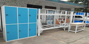 今天,我們學(xué)校收到了一批組合式的學(xué)生公寓床,為了讓我們?cè)琰c(diǎn)看到它的樣子,安裝師傅們?cè)谶@里簡(jiǎn)單的組裝幾張公寓床,讓我們一起來看看吧!